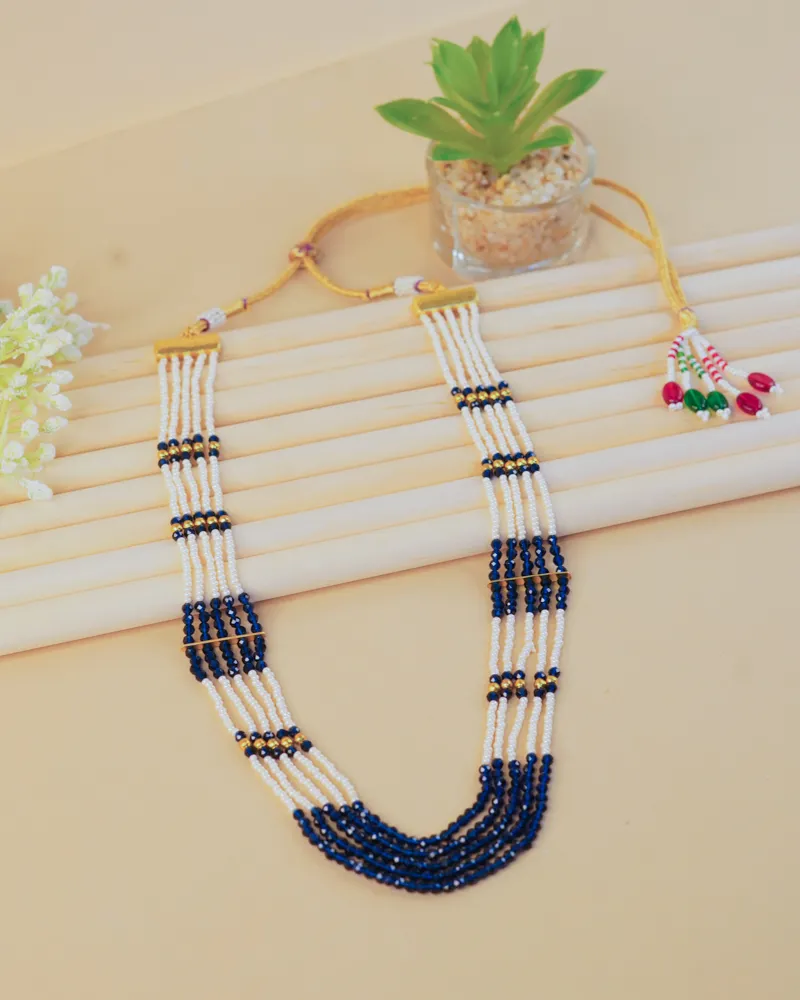 The beautiful sapphire mala give you a ethentic and casual look perfect for any function