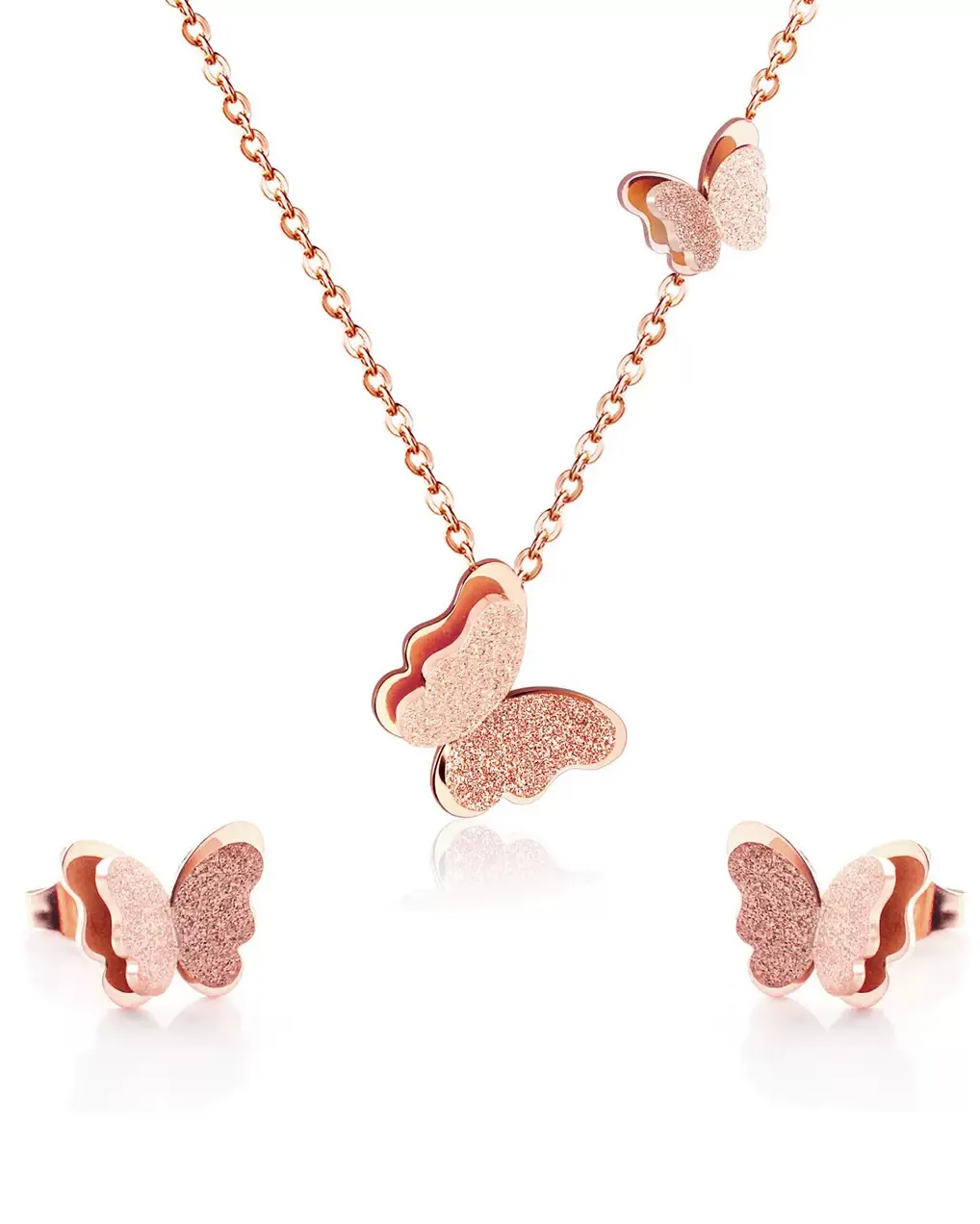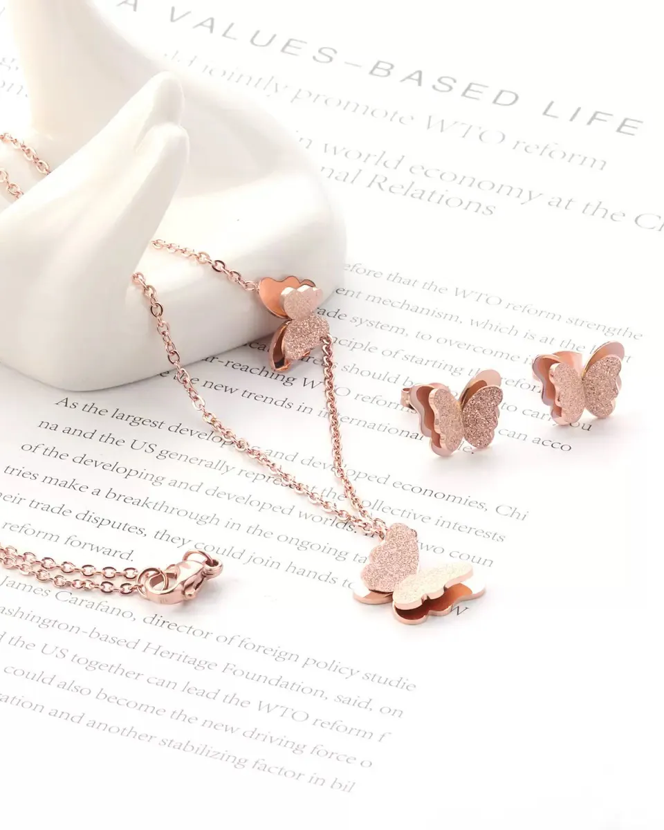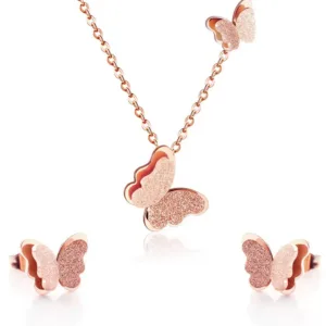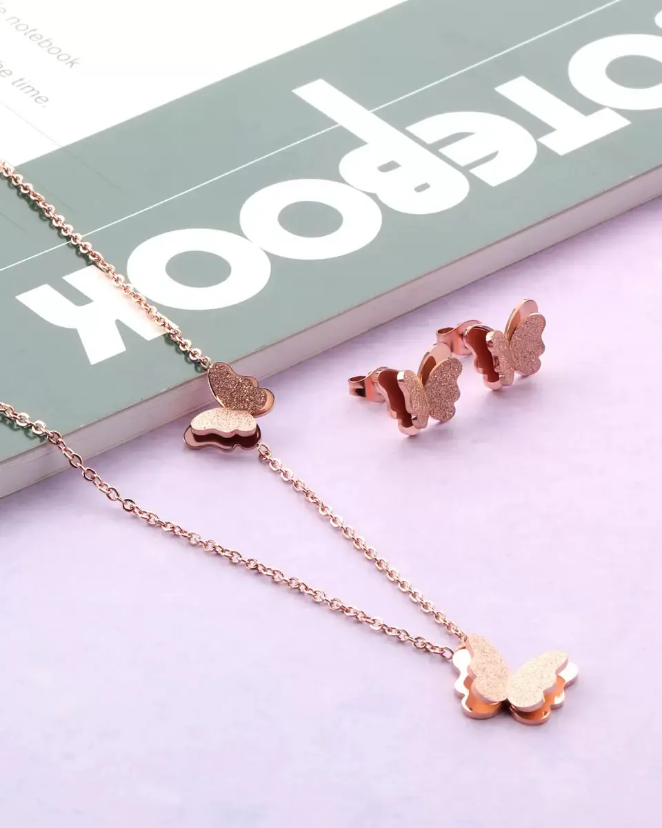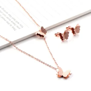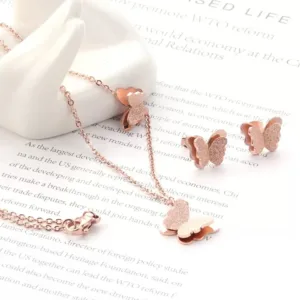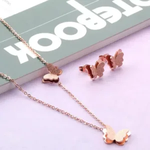 Elegant Gold plated butterfly pendant set with shimmering finish-a perfect blend of trendy charm and evryday elegance. ideal for modern ethnic looks and fashion jewellery lovers.