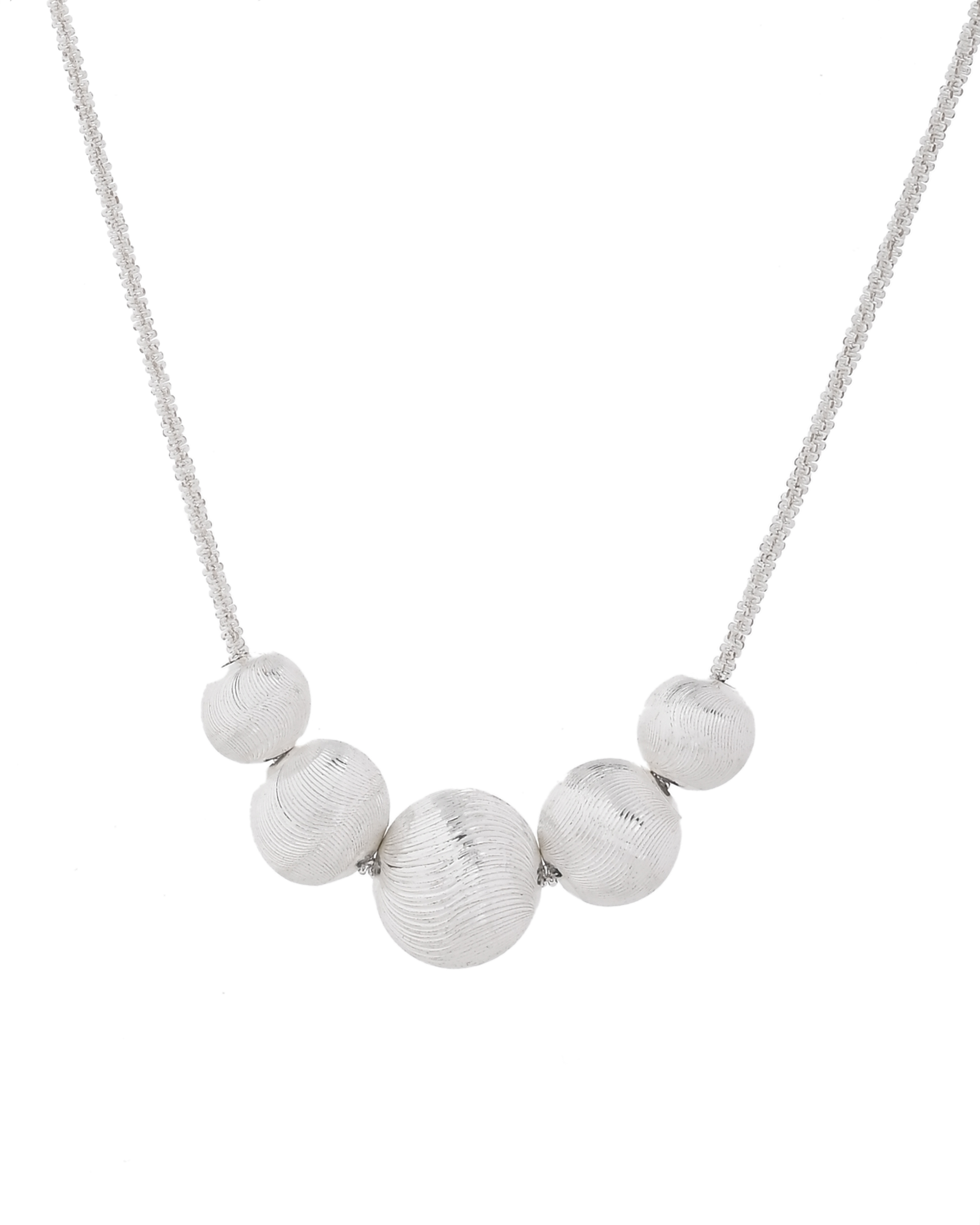 Designed with smooth, textured silver beads on a delicate chain, this necklace is a must-have for those who appreciate elegance with a modern twist.