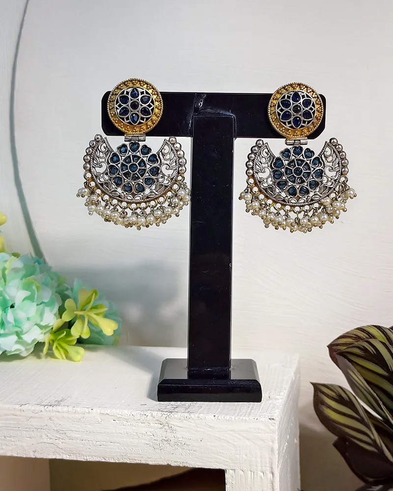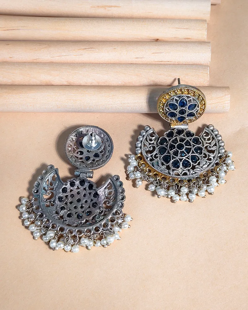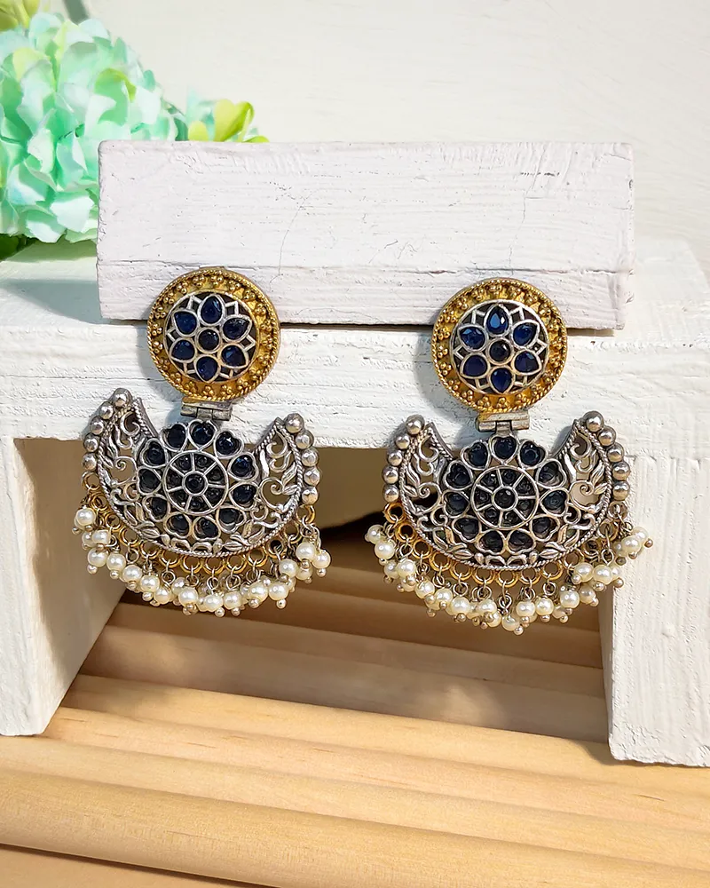 ethnic look with these beautifully crafted oxidized silver earrings, featuring detailing and a timeless antique finish. Lightweight, and perfect for or festive occasions.