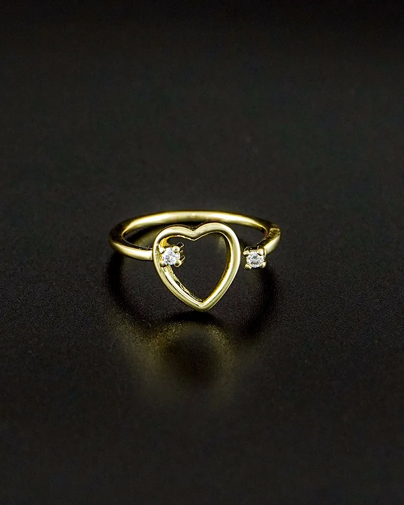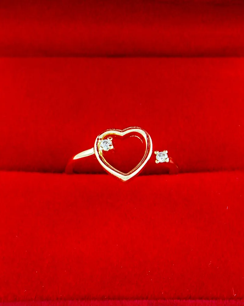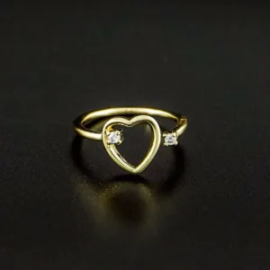 | Bangle Size | Celebrate love and elegance with this charming gold ring featuring a delicate open heart design at its center. Flanked by two sparkling round-cut diamond accents, the minimalist structure and romantic silhouette make it an ideal gift for a loved one or a graceful addition to your personal jewelry collection |