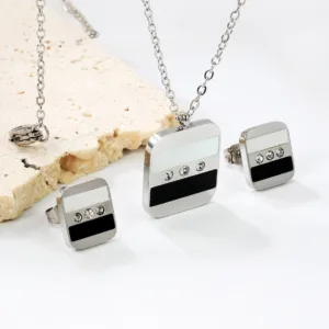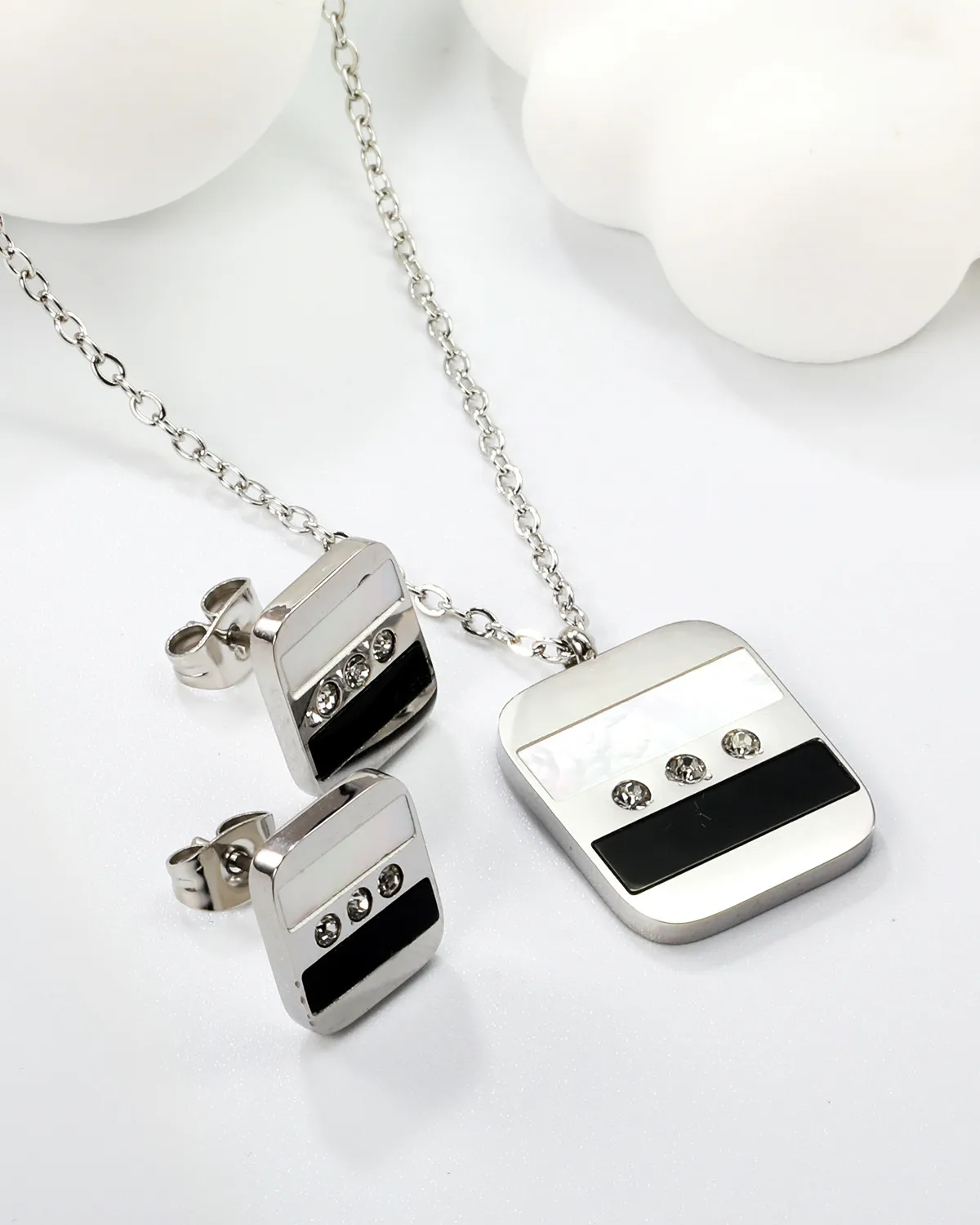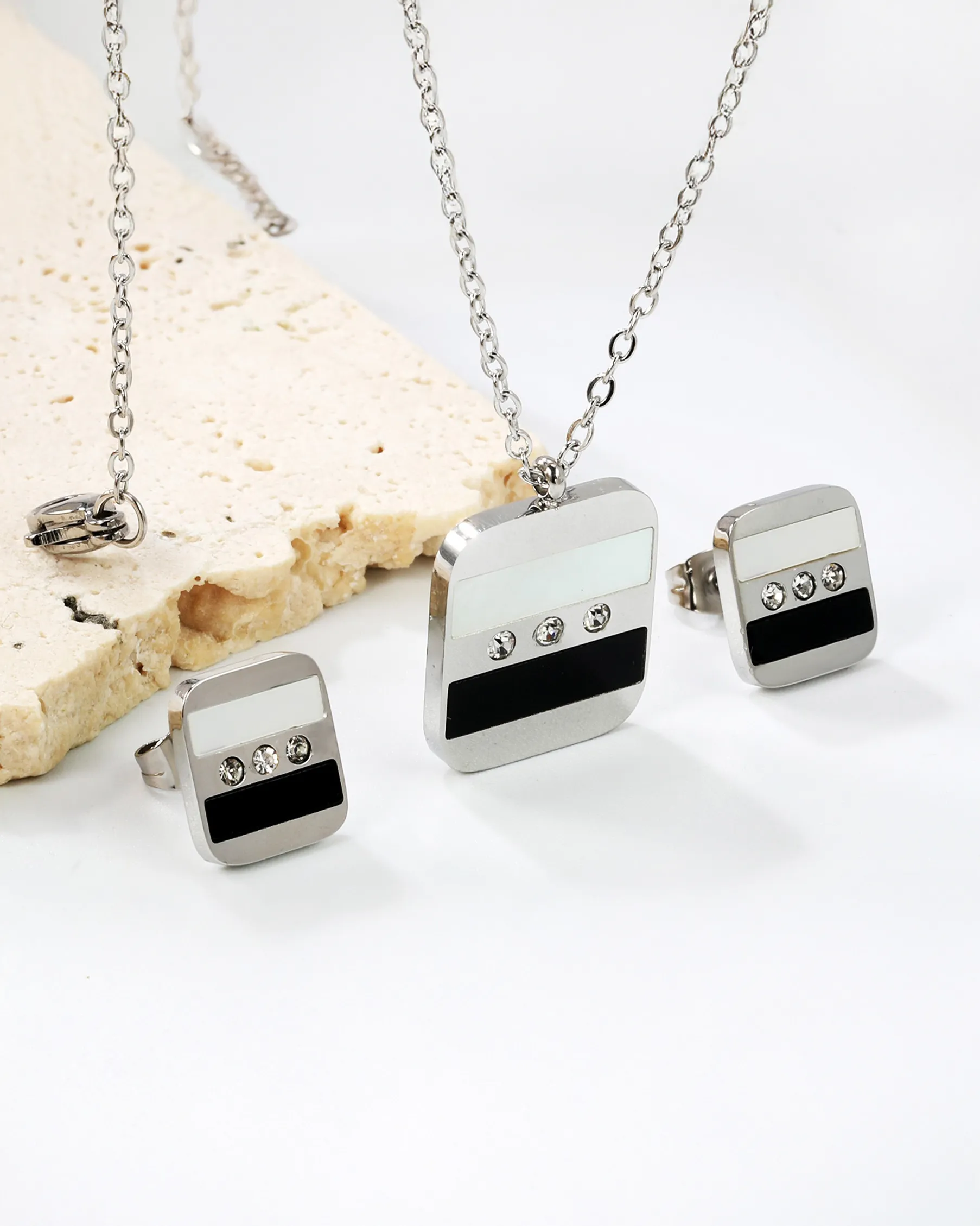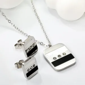Make a bold statement with this modern pendant featuring a chic geometric design in silver tone withl, black enamel, and sparkling crystal accents. Lightweight and perfect for everyday glam or evening elegance.