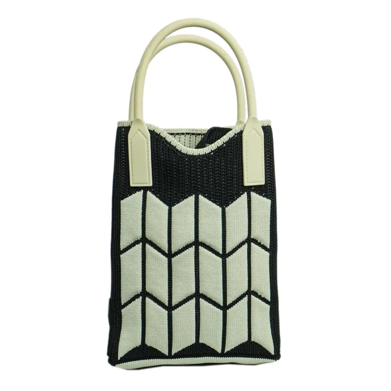 This elegant knitted crossbody bag showcases a modern geometric pattern, making it a perfect blend of style and sophistication. Designed with premium knitted fabric, it offers durability and a soft texture, while the sturdy synthetic leather handles provide a comfortable grip. The adjustable woven fabric strap ensures versatility, allowing for effortless carrying. Ideal for both casual and formal occasions, this bag combines practicality with a sleek aesthetic.