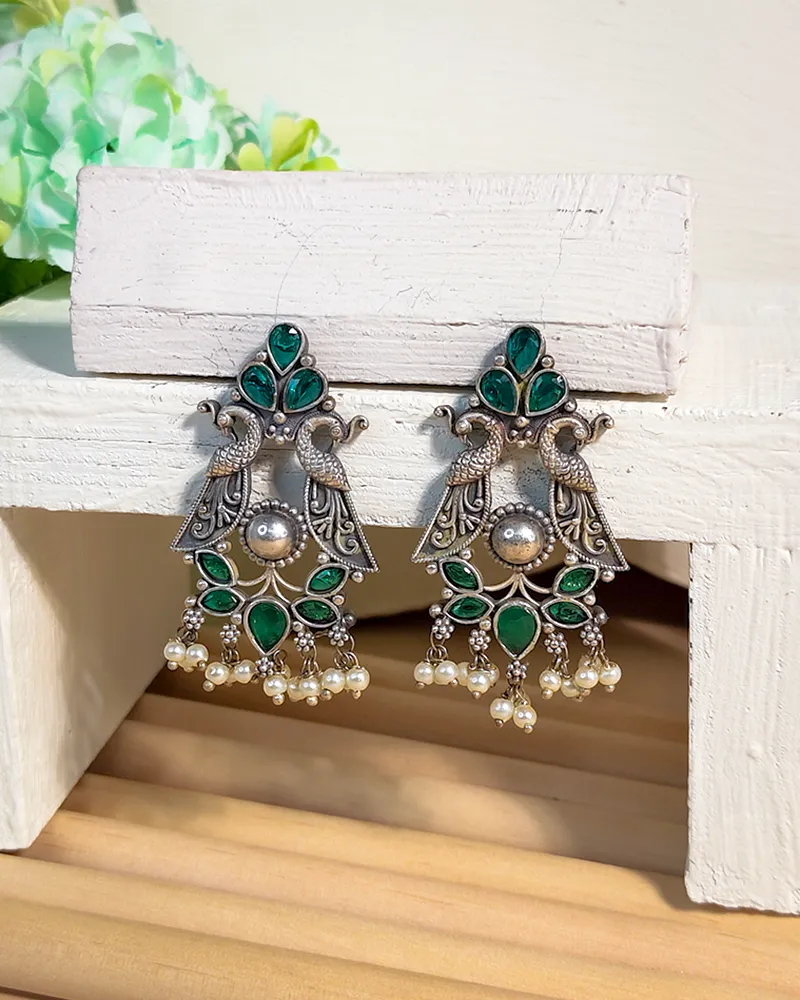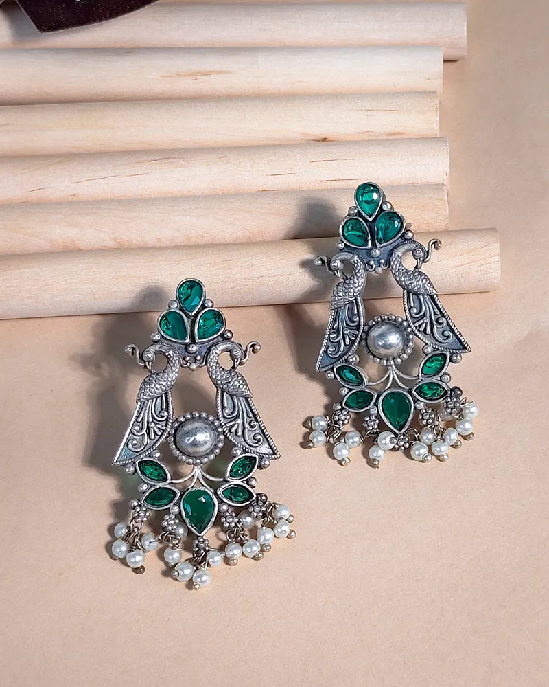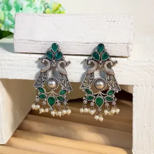 These earrings bring a soft, graceful Indian vibe that makes them ideal for traditional puja, small gatherings, or elegant evening wear.
