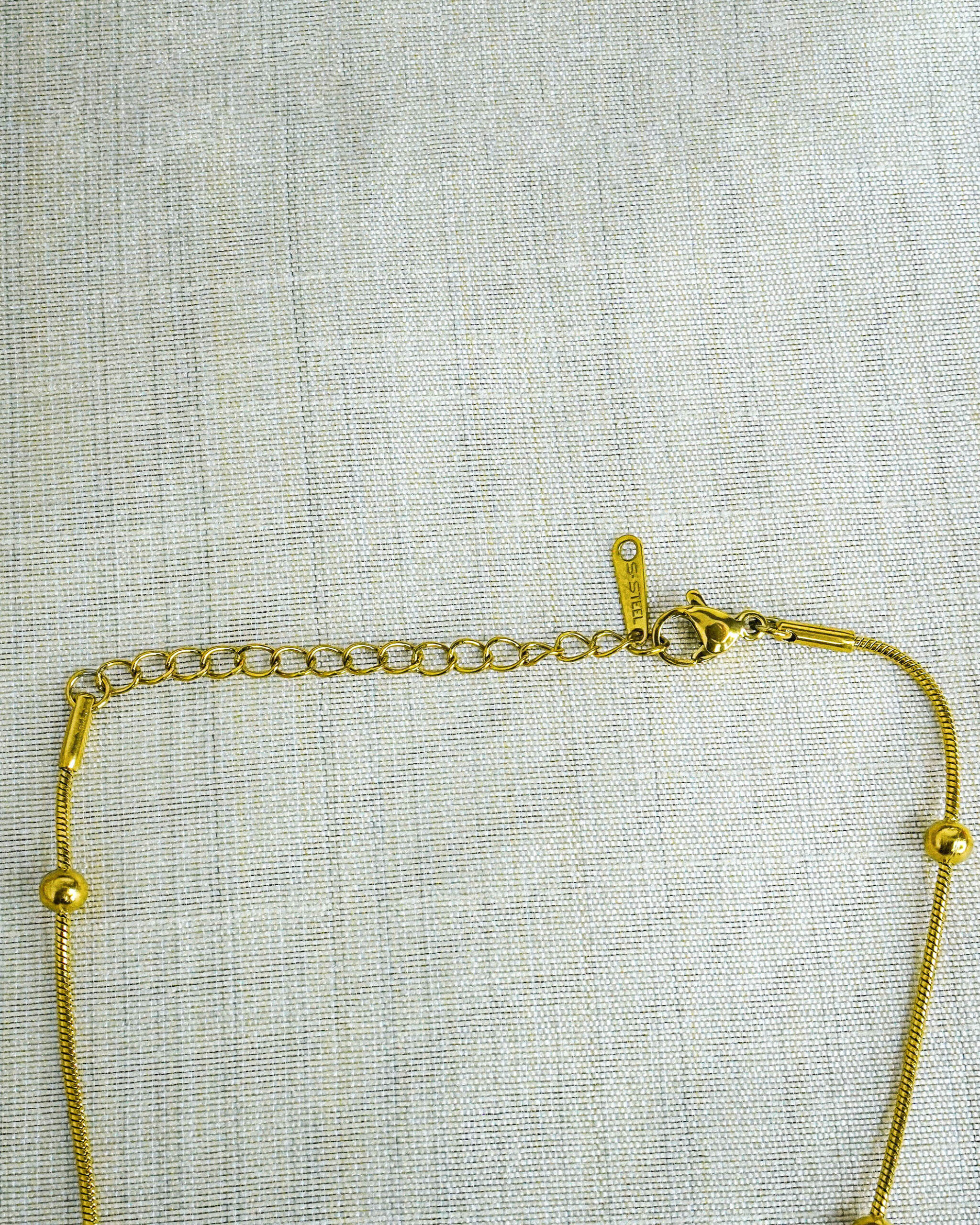 Elevate your elegance with this exquisite gold chain, featuring a sleek snake design adorned with perfectly spaced golden beads. Its minimal yet striking look makes it an ideal choice for both casual and festive occasions.