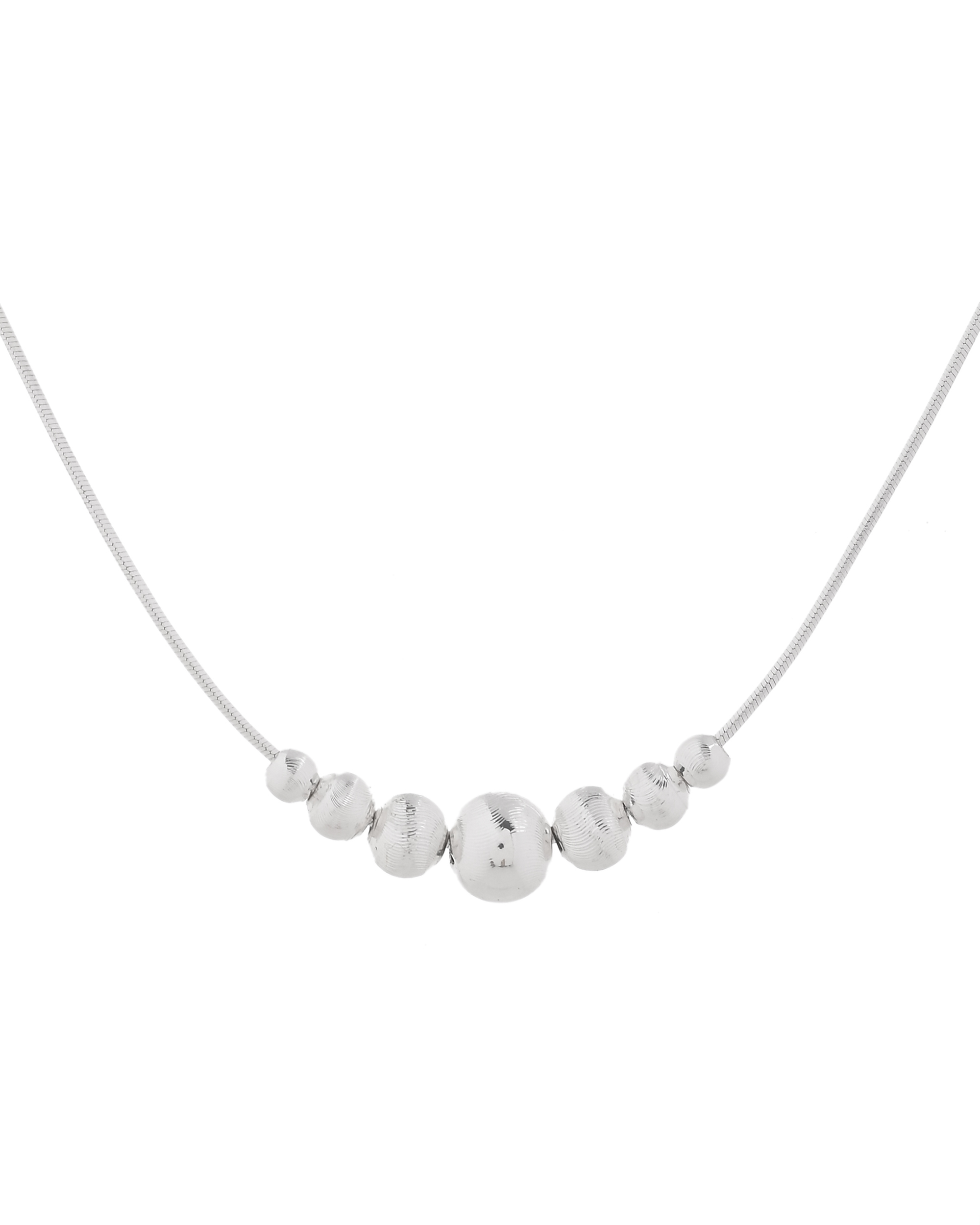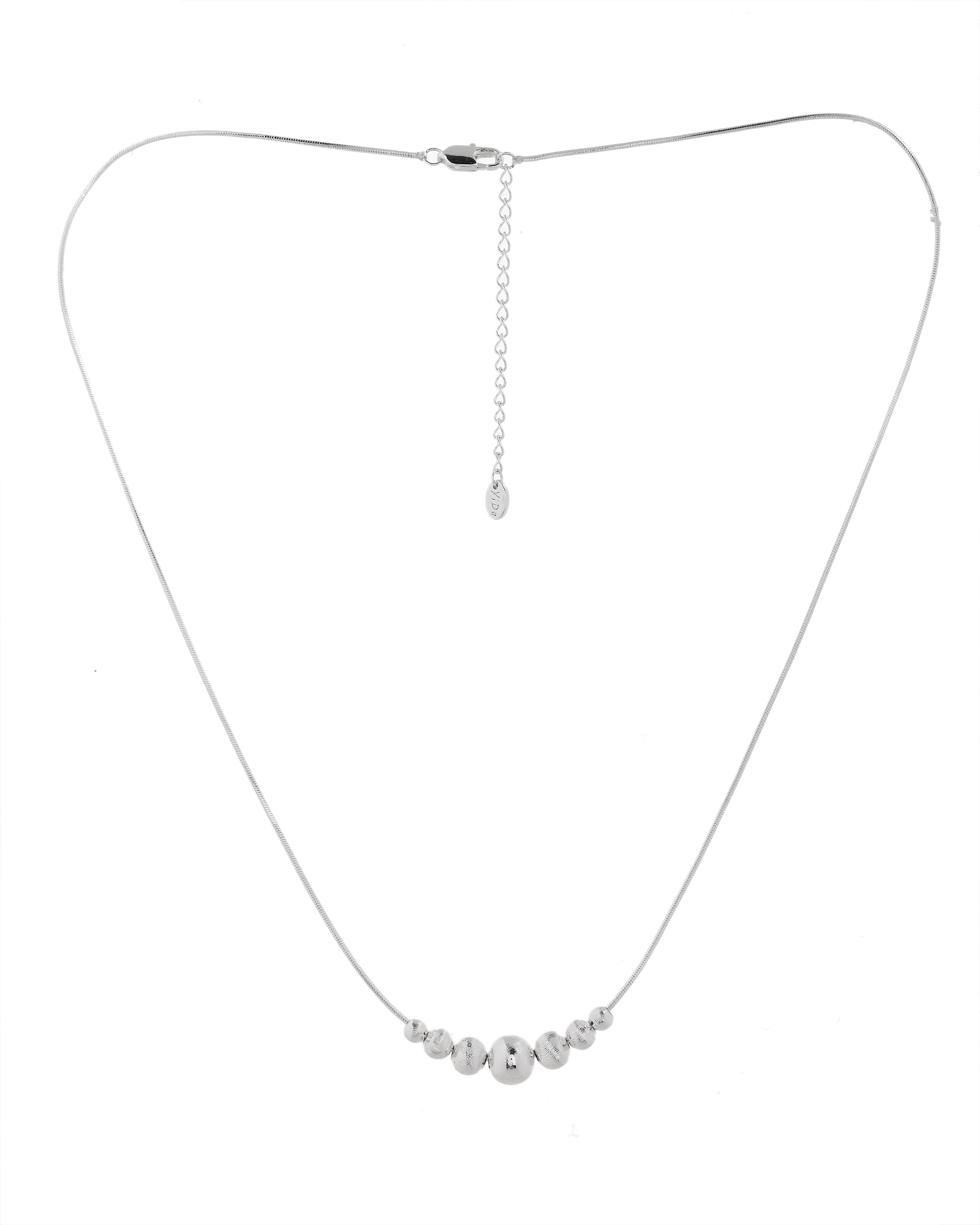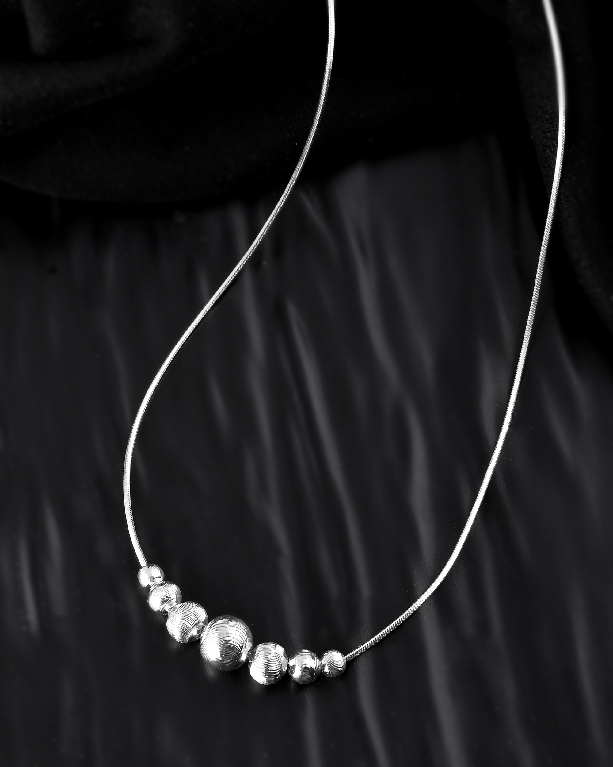 Featuring a refined design with graduated silver beads on a smooth chain, this necklace is a perfect balance of modern minimalism and classic charm.