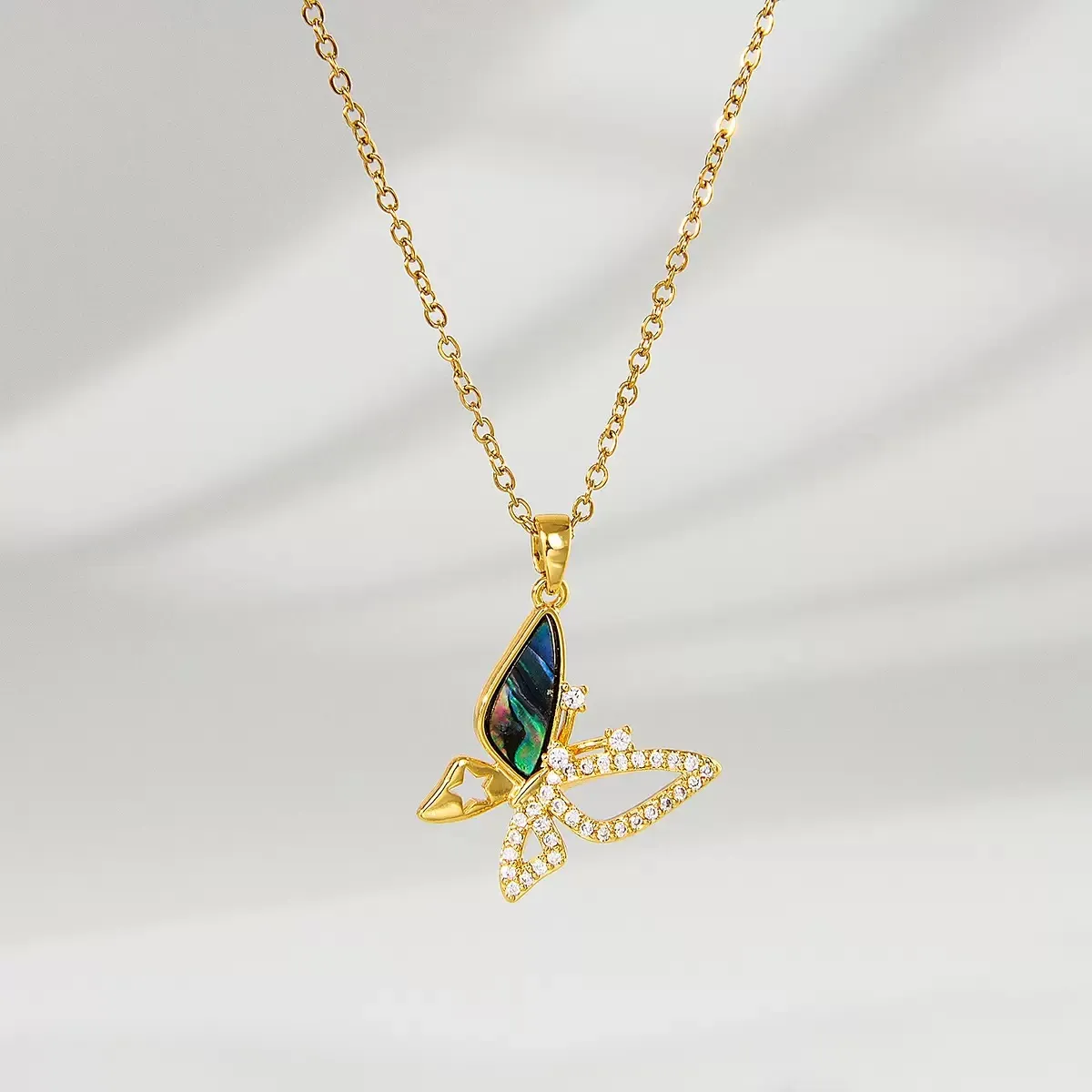 minimalist design, this gold-tone features a beautiful colourful butterfly