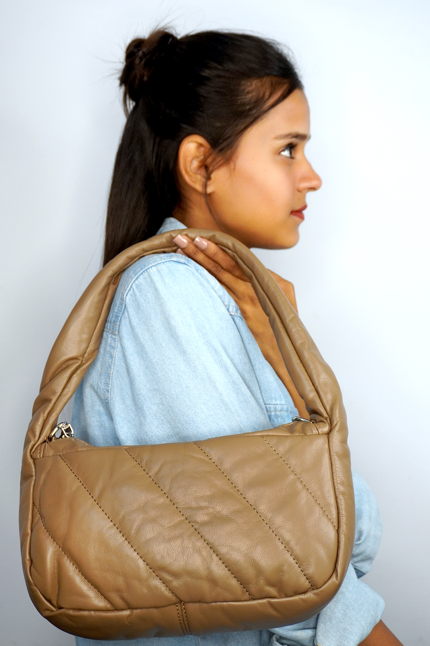 Upgrade your style with this chic quilted shoulder bag, crafted from premium faux leather in a rich brown shade. The soft, padded design adds a touch of elegance, while the versatile detachable strap allows you to wear it as a handbag or crossbody. Featuring a secure zip closure and spacious interior, it’s perfect for carrying your daily essentials with ease.