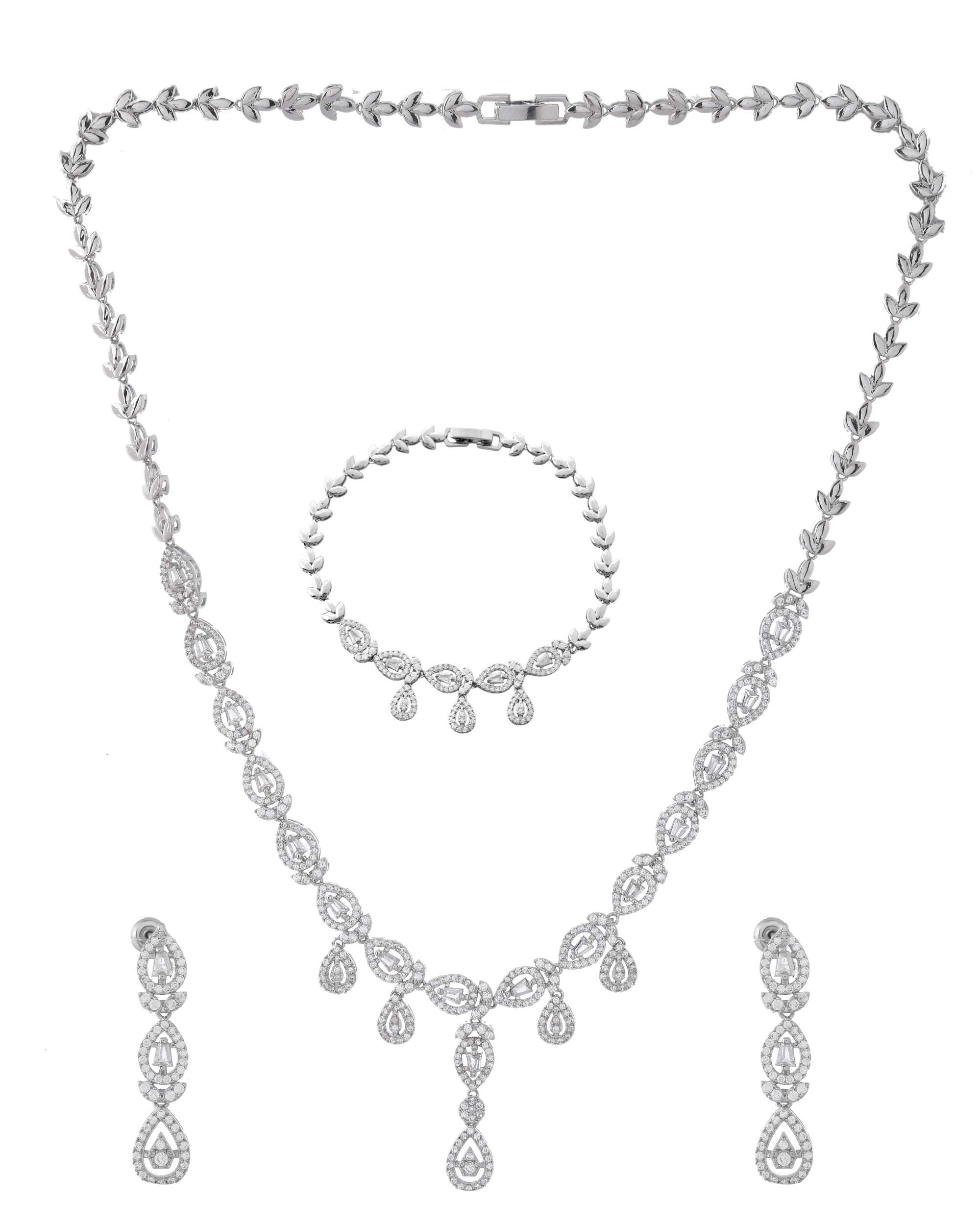 A masterpiece that mirrors the grace of raindrops, this set boasts exquisite pear-shaped diamonds arranged in a delicate pattern. A timeless choice for those who love classic luxury.