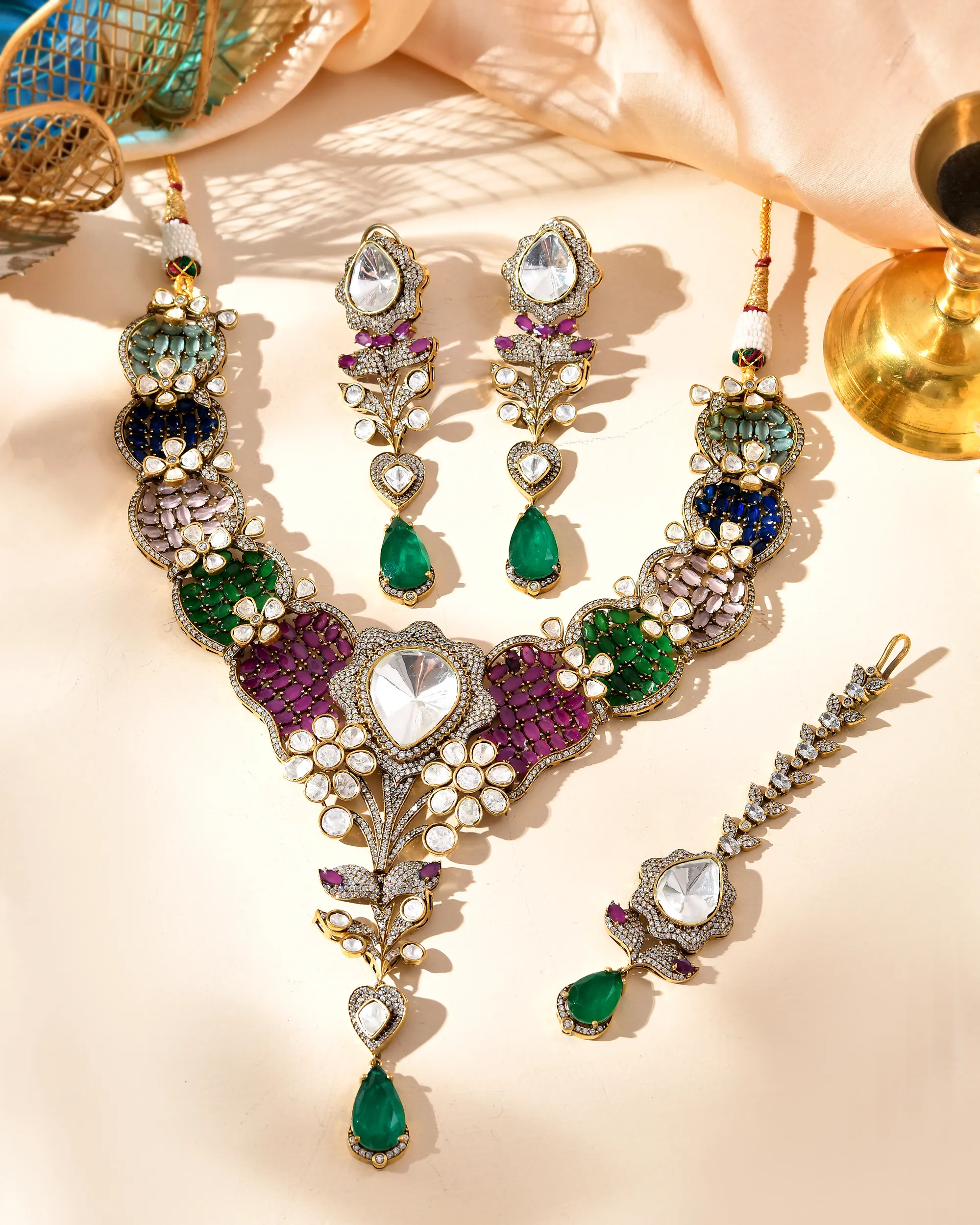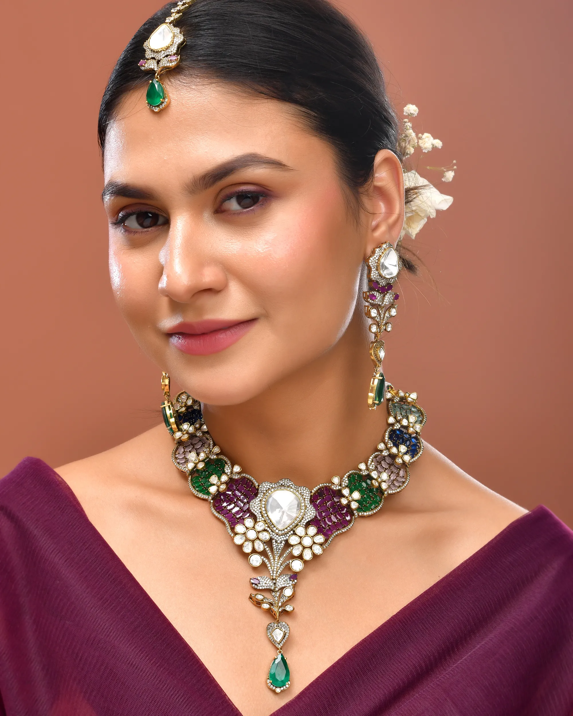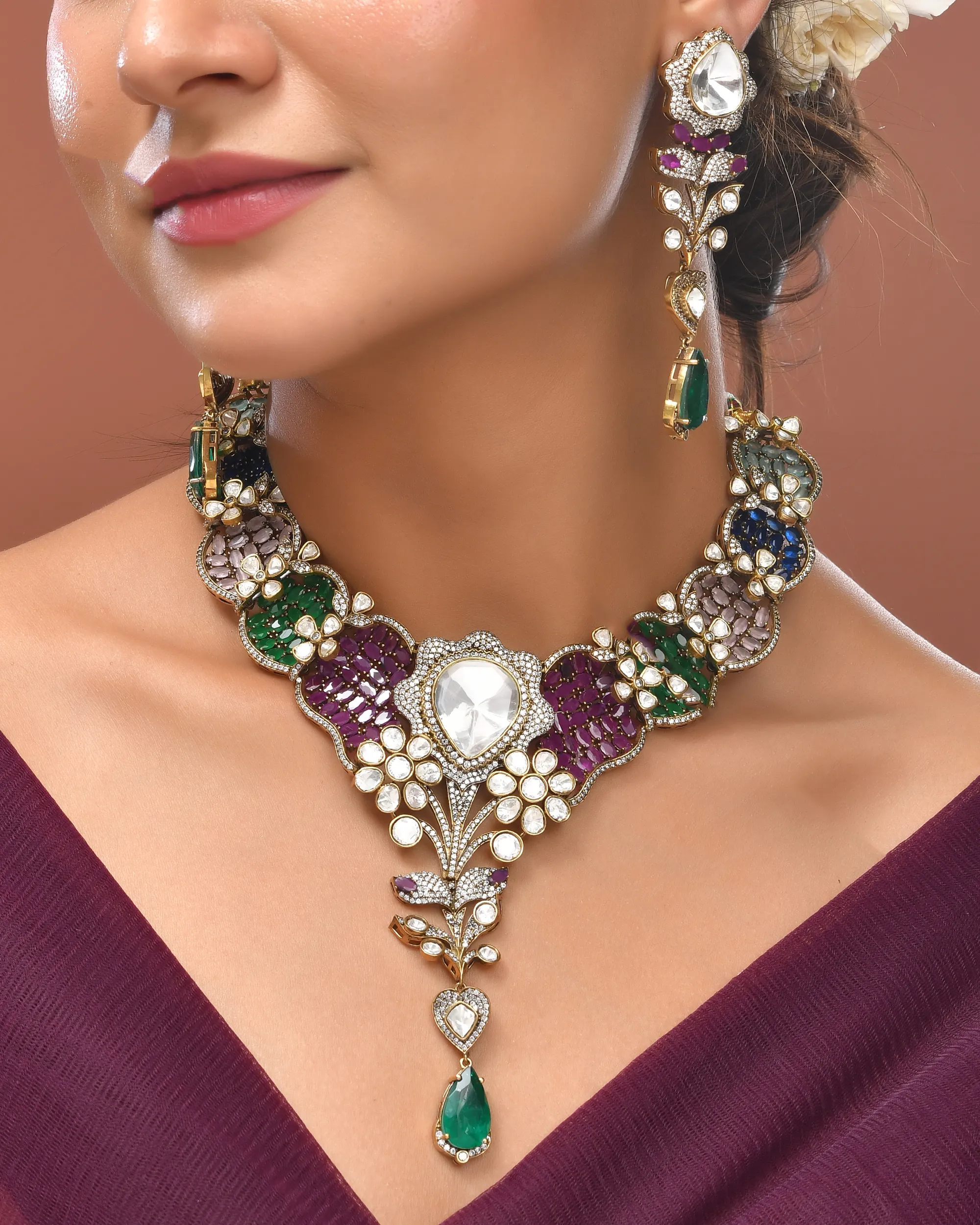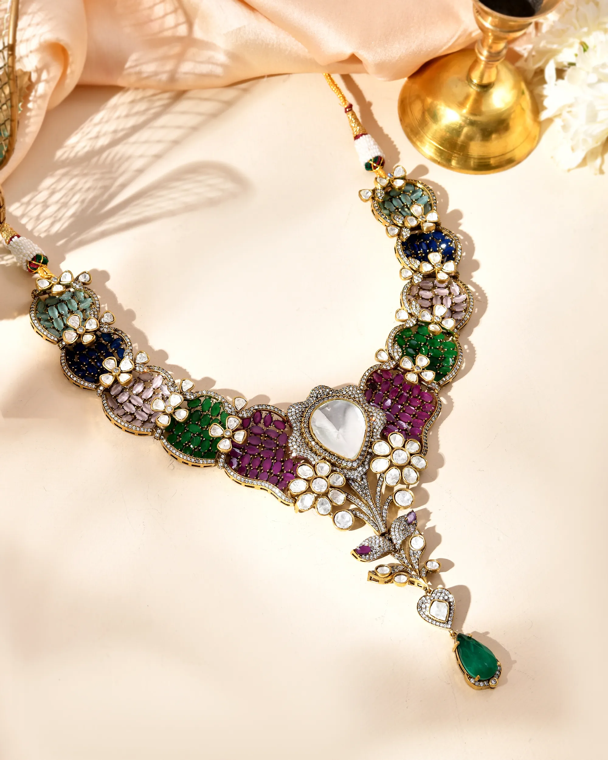 This beautifull necklace exquisite multi-gamestone traditional and indian necklace.