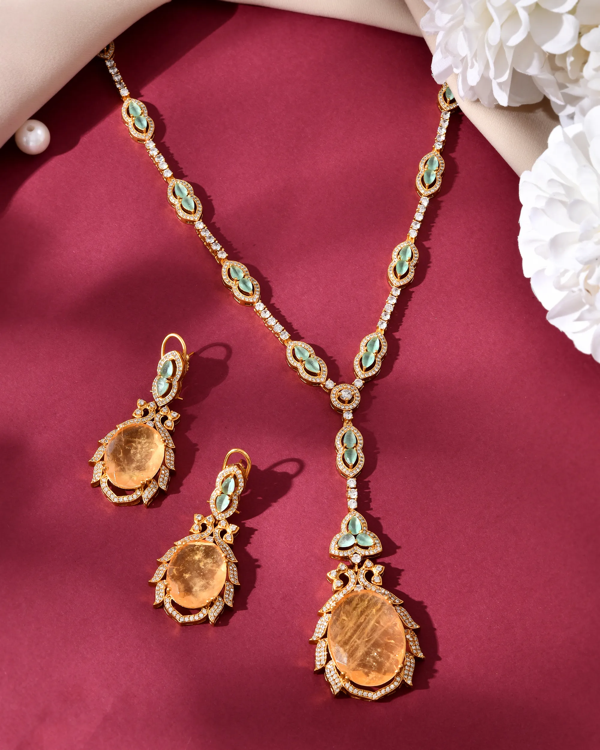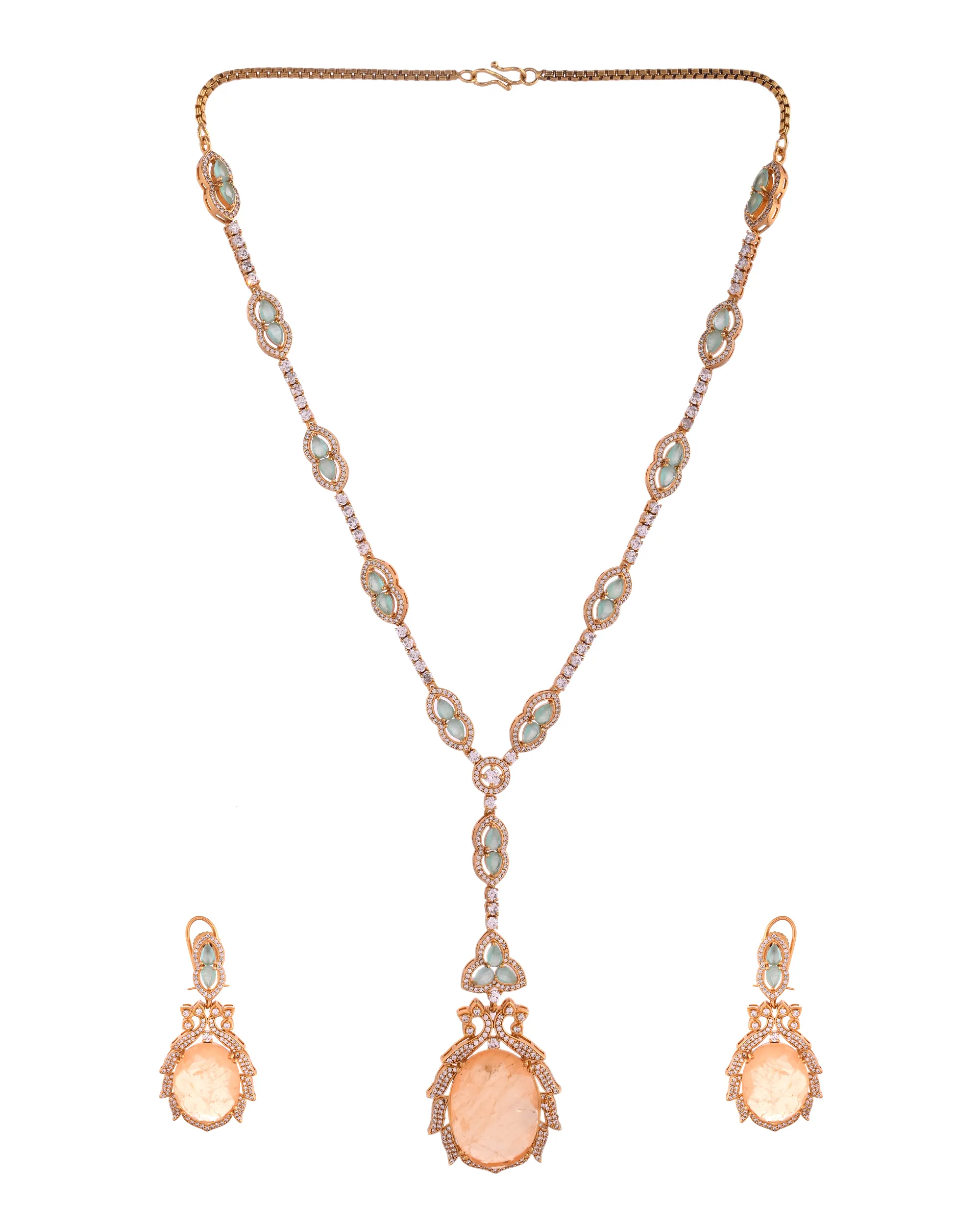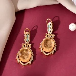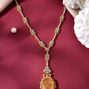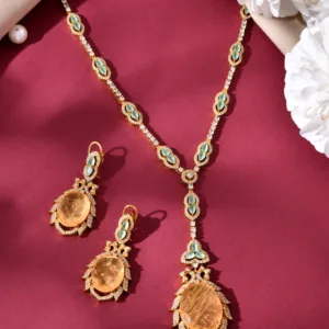 Elegant jwellry with matching earing emerlad green stone featuring give a luxurious and asthetic look