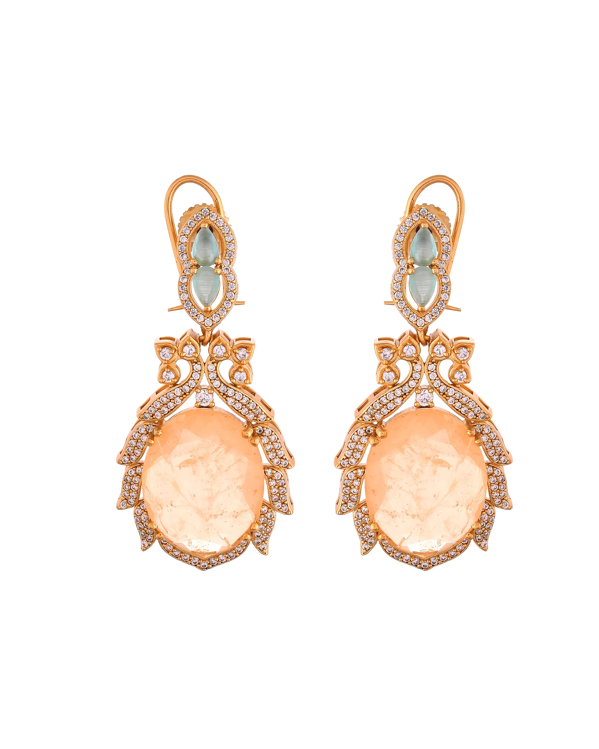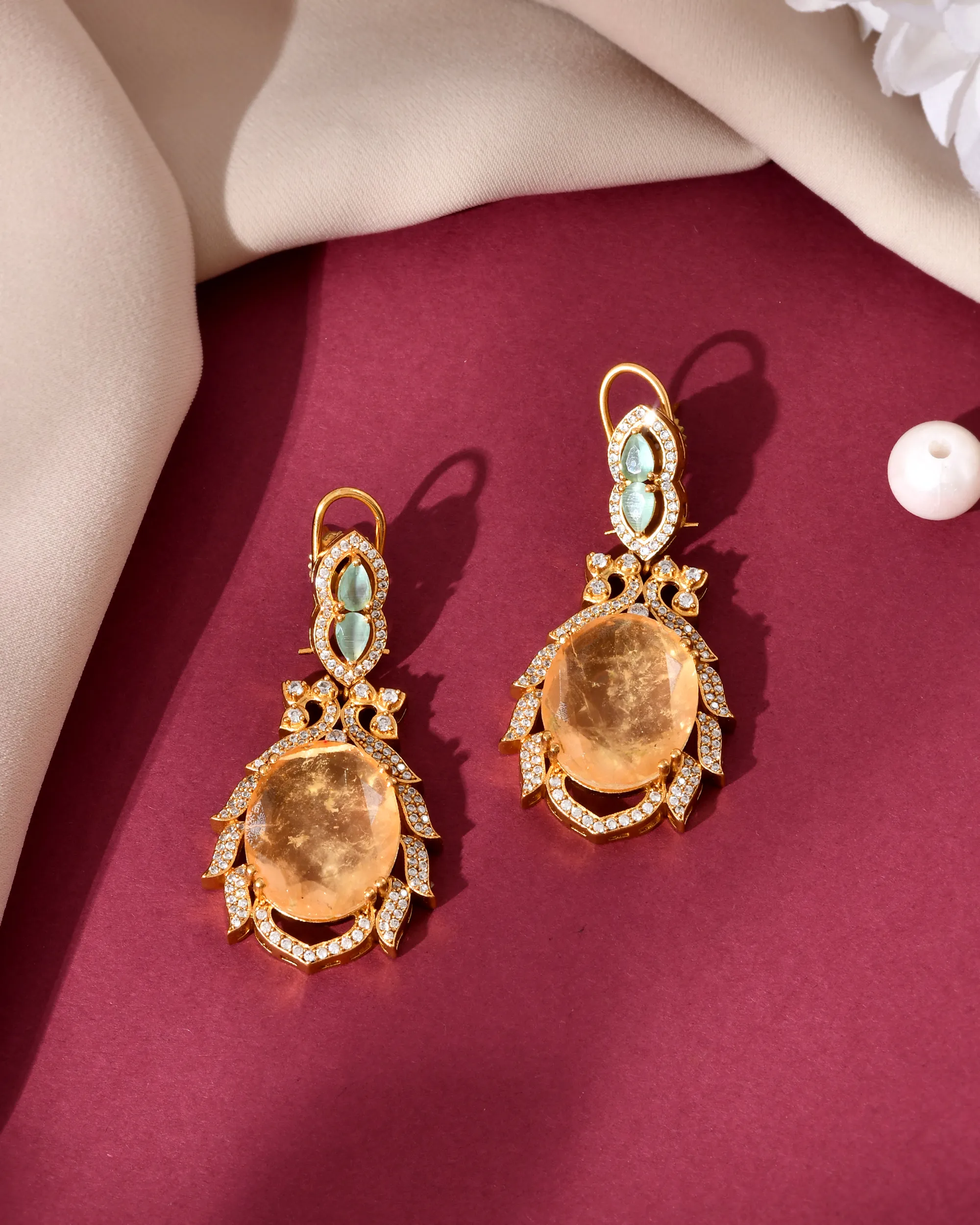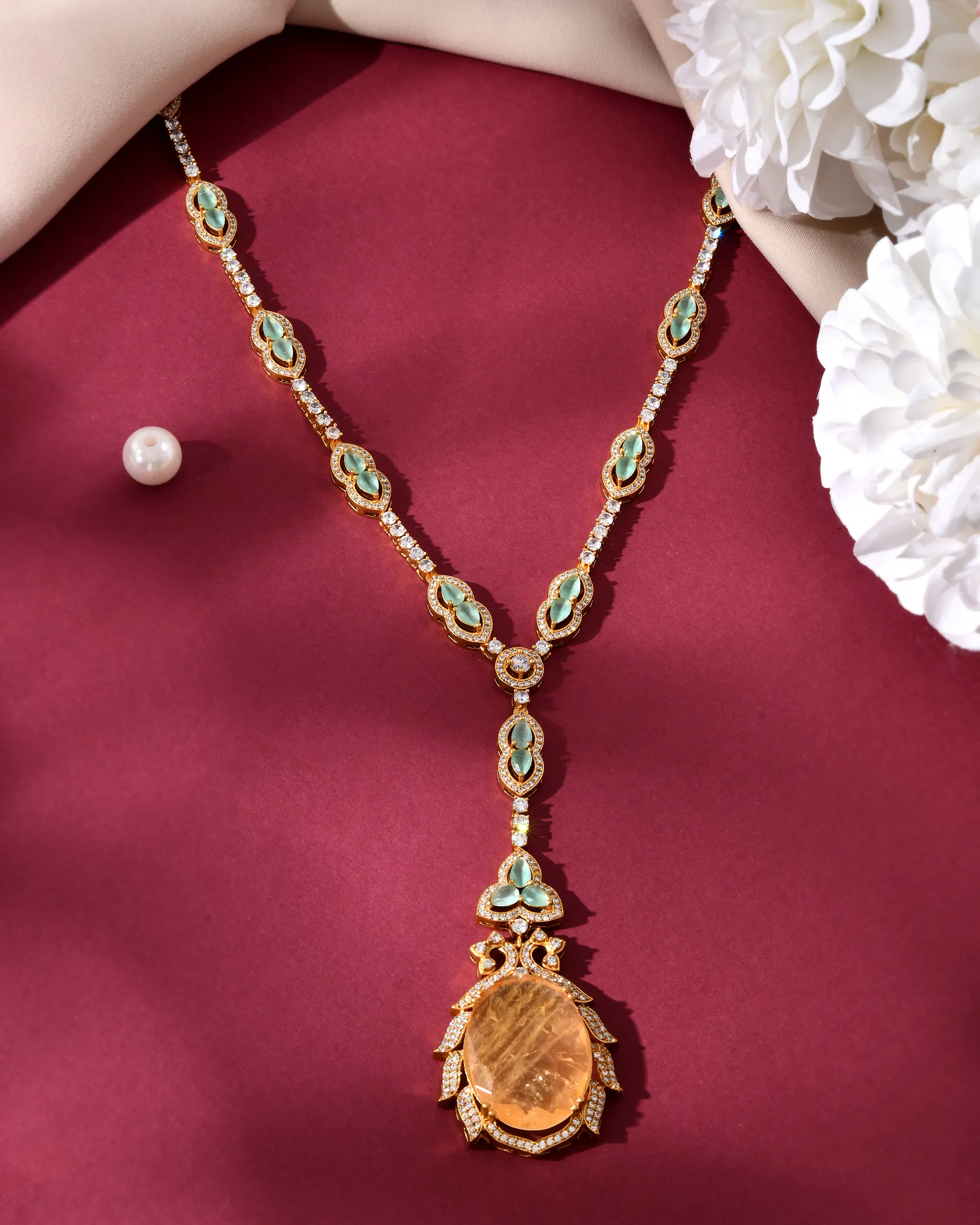 Elegant jwellry with matching earing emerlad green stone featuring give a luxurious and asthetic look
