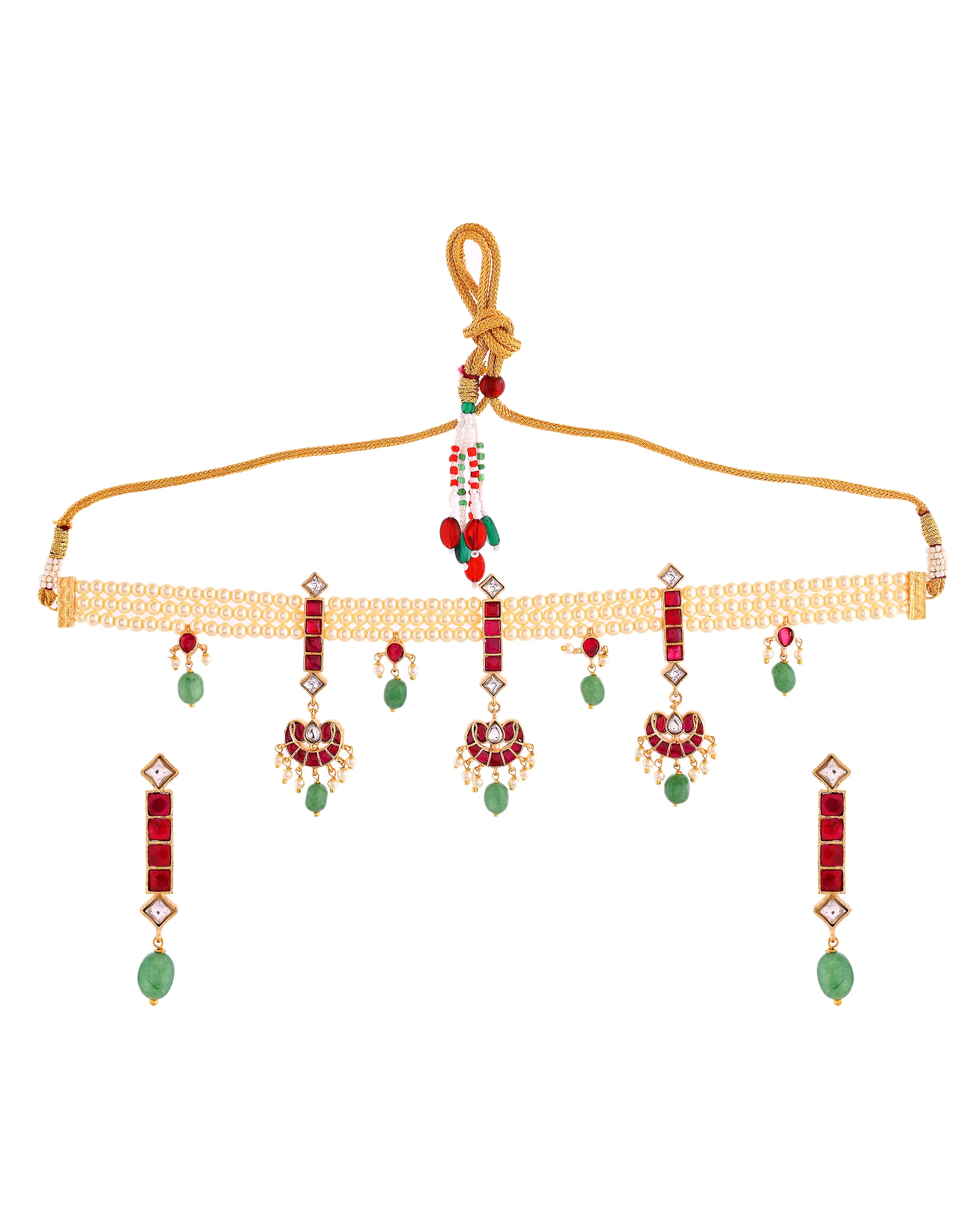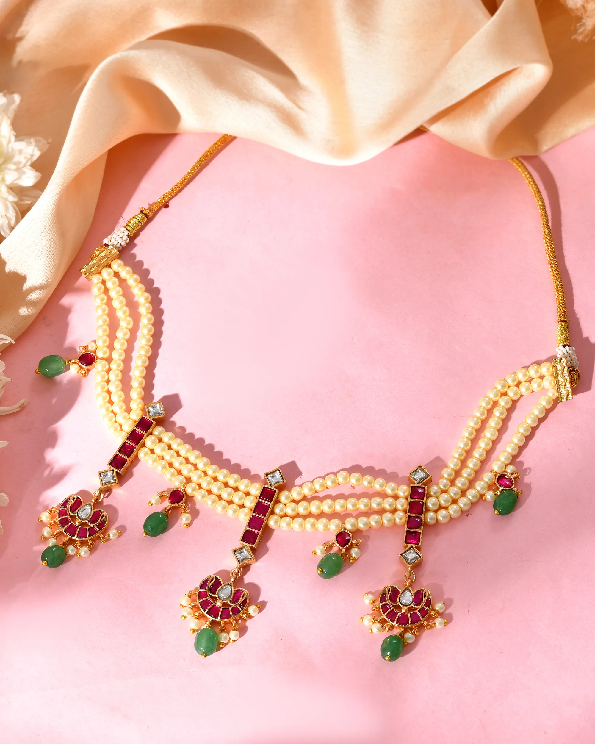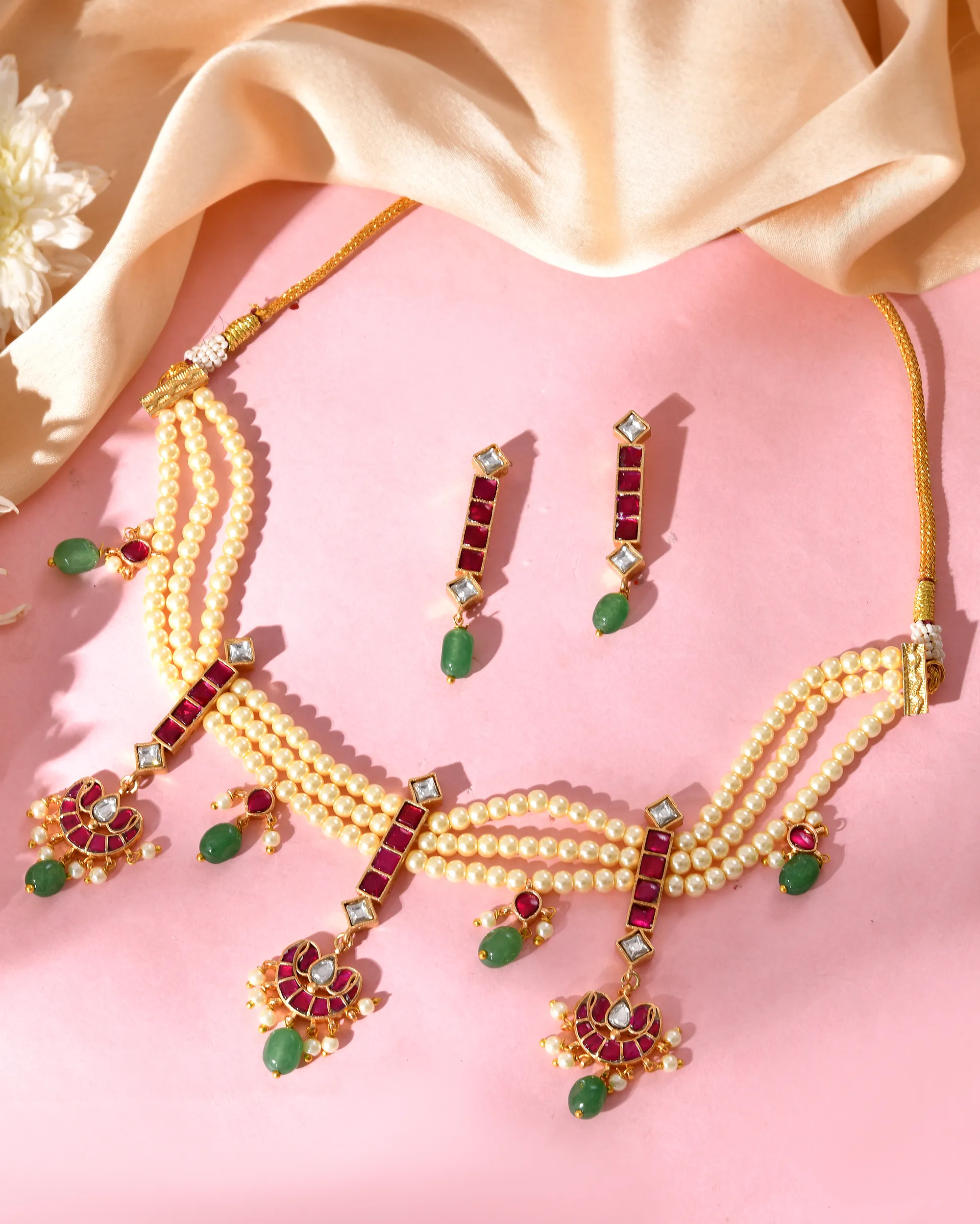 Jadau kundan jwelery with beautifull stones made of lustrous pearls