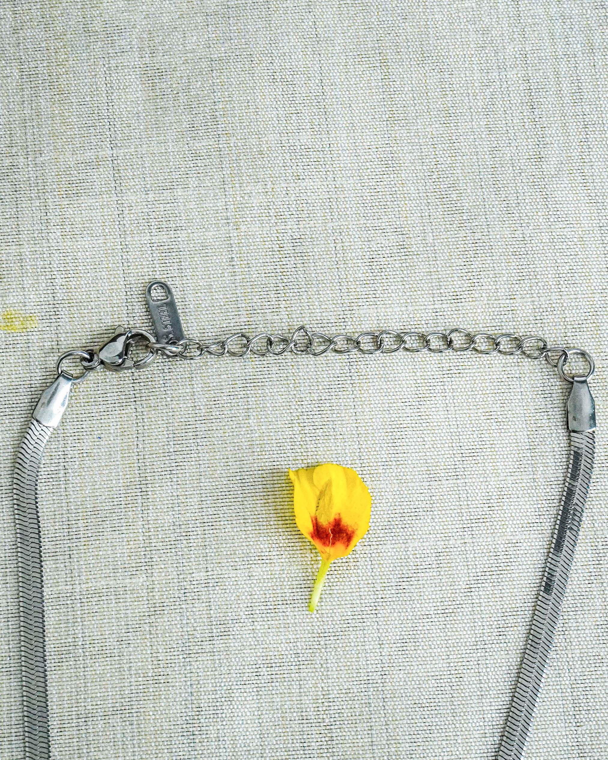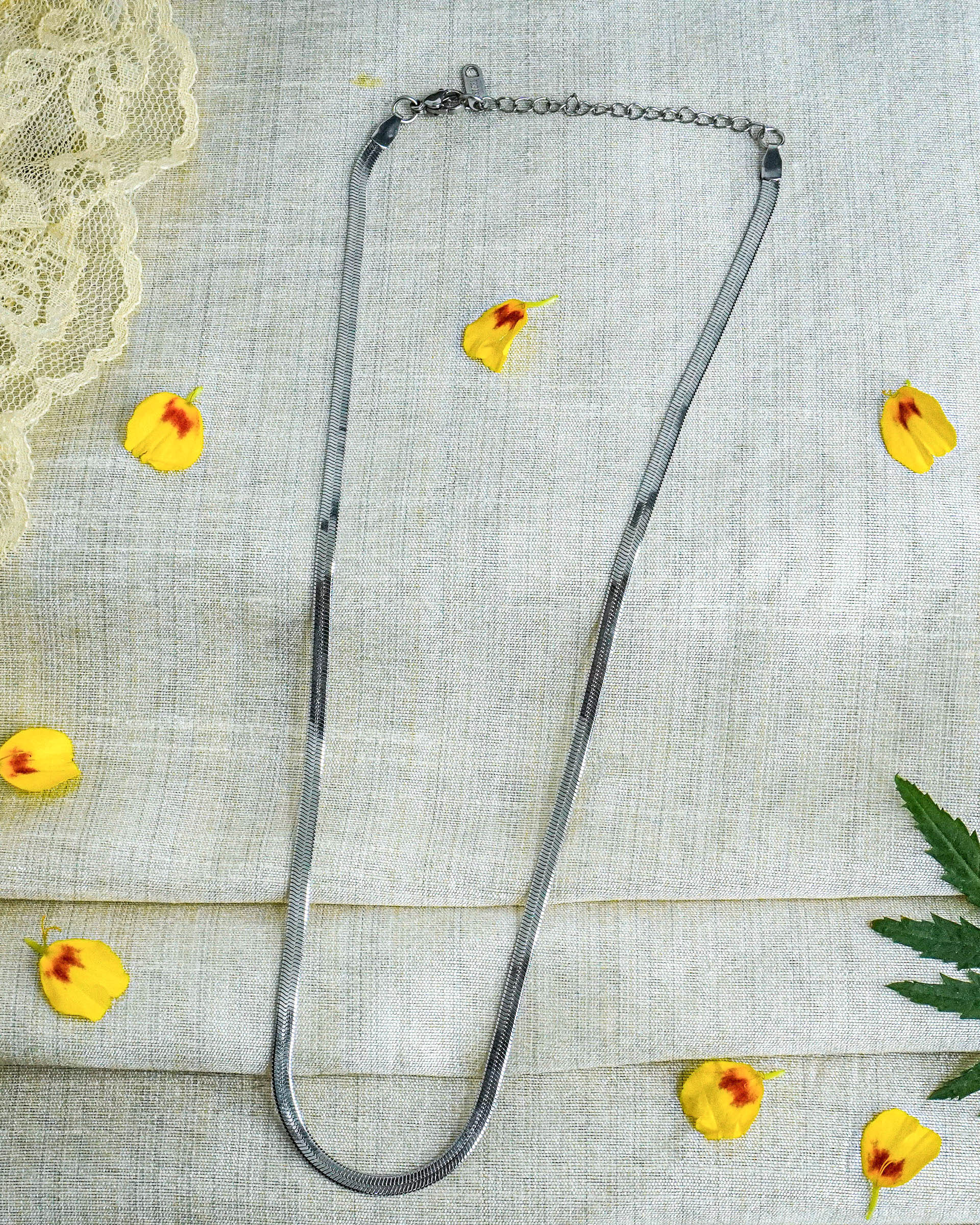 This stunning silver herringbone chain is the perfect blend of modern minimalism and classic sophistication. With its fluid, flat design, it sits effortlessly against the skin, reflecting light with every movement.