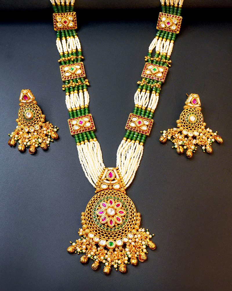 Traditional Temple-Style Necklace Set with Intricate Beadwork