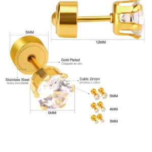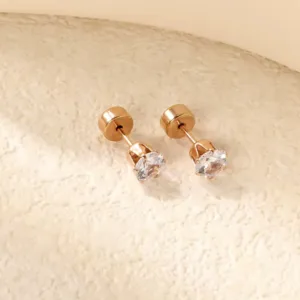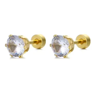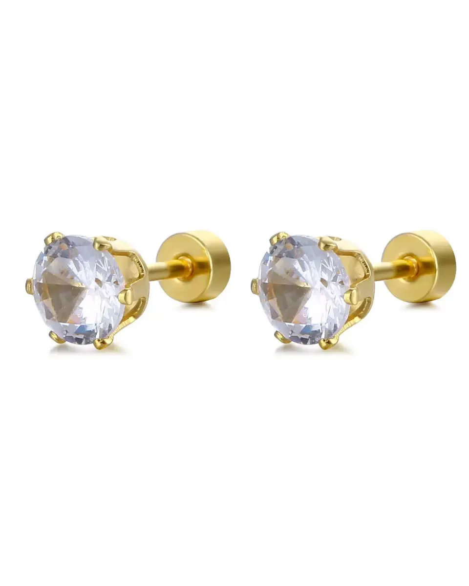 Gold- coated stone stud earring with push clouser